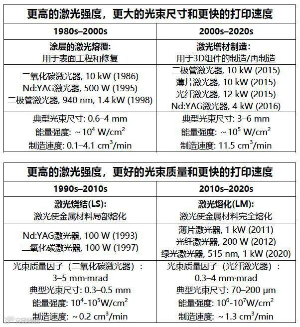 其中激光增材制造(Laser Additive Manufacturing, LAM)(名词解释>)技术是一种以激光为能量源的增材制造技术,激光具有高能量密度,可实现难熔金属和合金的成形制造。