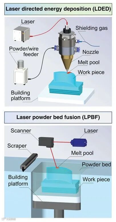 目前,制备金属部件的两种主要方法是激光定向能量沉积(LDED)和激光粉末床熔合(LPBF)。