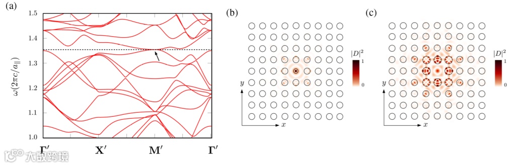 在过去三十年中,光子晶体(PhC)显示出特殊的限制和传输特性,利用光子带隙,可以抑制嵌入的量子发射器的自发辐射,促进通过带边操作的慢光,或作为高Q谐振器或波导的宿主局部缺陷模式。受限缺陷模式构成了许多器件的基础,如PhC光纤、光谱滤波器和激光器,为了实现近乎完美的受限,缺陷模式被构造成位于光子带隙内,以便在光谱上将它们与PhC的扩展态隔离开来。然而,这就需要使用具有足够高折射率的材料来打开完整的间隙。另一种限制机制可以绕过对带隙的需求,使得许多低折射率材料(如玻璃和聚合物)的使用成为可能,并提高了实现基于PhC的器件的设计灵活性。实现这一点的一种可能方法是使用连续体中的束缚态(BICs)。BIC是一个系统的本征模,尽管它退化为一个连续的扩展态,但仍然是有限的。实际上,到目前为止,在嵌入多维光子晶体内部的点缺陷中还没有实现连续介质中的限制。