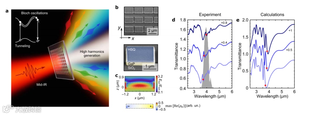 传统上,在超强激光场隧穿电离的气体中观察到强谐波产生(HHG),超过了结合电子与原子核的气体。高电离阈值、反演对称性和气体室施加的基础设施要求给现有光电平台集成的小足迹低功率源的开发带来了挑战,以实现高效和宽带高谐波产生。固态材料代表了高谐波产生源的一个有吸引力的替代。然而,传统的利用块体晶体产生高谐波的方法由于谐波重吸收和相位不匹配,不能同时实现高转换效率和宽光谱带宽。最近,设计纳米结构引起了相当多的关注,因为它们可以通过各种机制缓解局部增强的光学热点场带来的这些问题:在接近零的状态下运行,在Si超表面中发现的高质量因子集体模式,或等离子体场增强。然而,在强场条件下通过光谱选择超表面实现高效高谐波产生的几个挑战可以被识别出来。此外,过量的自由载流子会大大降低谐振超表面的质量(Q)因子,从而破坏其关键目的:产生共振驱动的光学热点。其次,不透明材料对谐波的吸收降低了高谐波产生体积,大大降低了高谐波产生效率。最后,中心对称材料只能产生一个谐波子集(奇)。