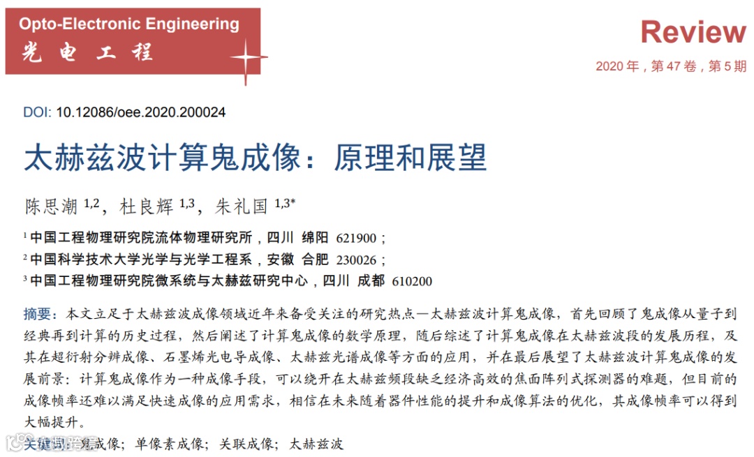Chen S C, Du L H, Zhu L G. THz wave computational ghost imaging: principles and outlooks[J]. Opto-Electron Eng, 2020, 47(5): 200024.