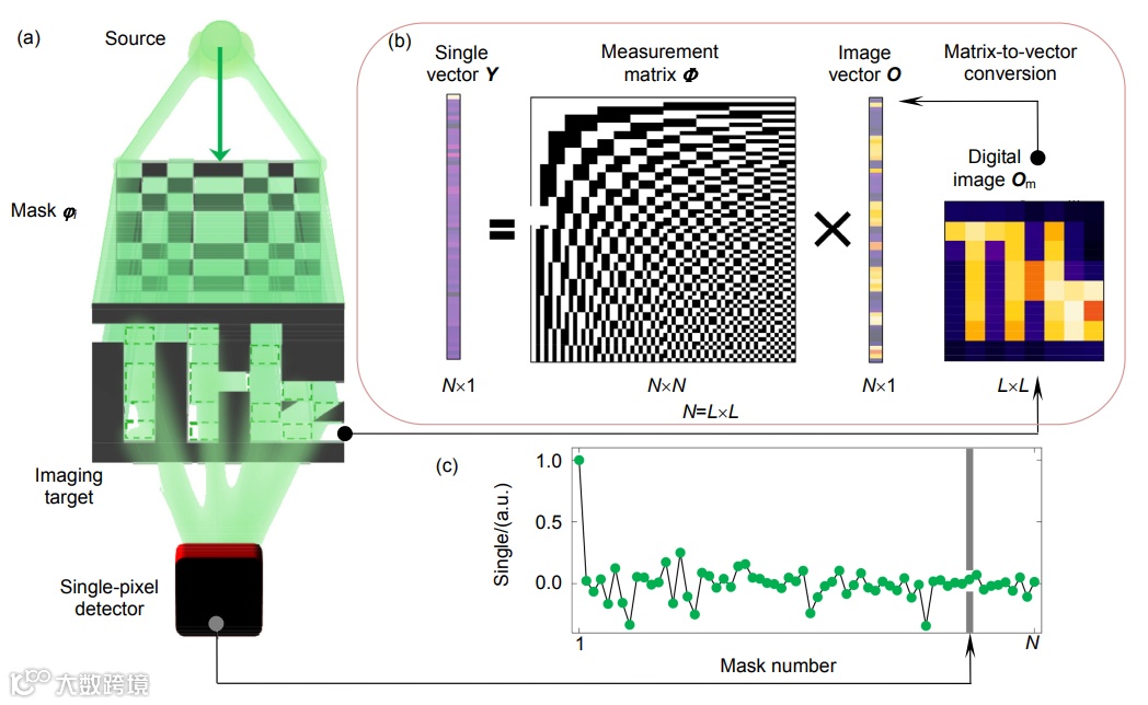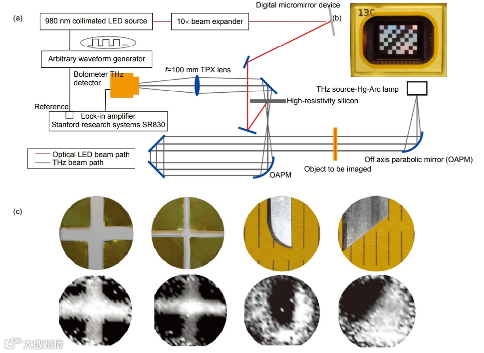 太赫兹成像拥有巨大的应用前景,在多个领域实现了诸如无损检测[1]、化学成像(chemical mapping)[2]、生物检测[3]、肿瘤成像[4]等应用。但是在太赫兹波段,由于性能优越的阵列式探测器制造比较困难,以往的太赫兹成像通常采用逐点扫描的方式。而将鬼成像与太赫兹成像相结合,能够有效地避开以上难题。