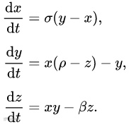 这还要从混沌系统中蝴蝶效应的发现者——洛伦兹说起。早在1963年,气象学家爱德华·洛伦兹(Edward Lorenz)为了模拟天气系统中的对流运动,写下了一个简化版的方程,方程长的是这个样子: