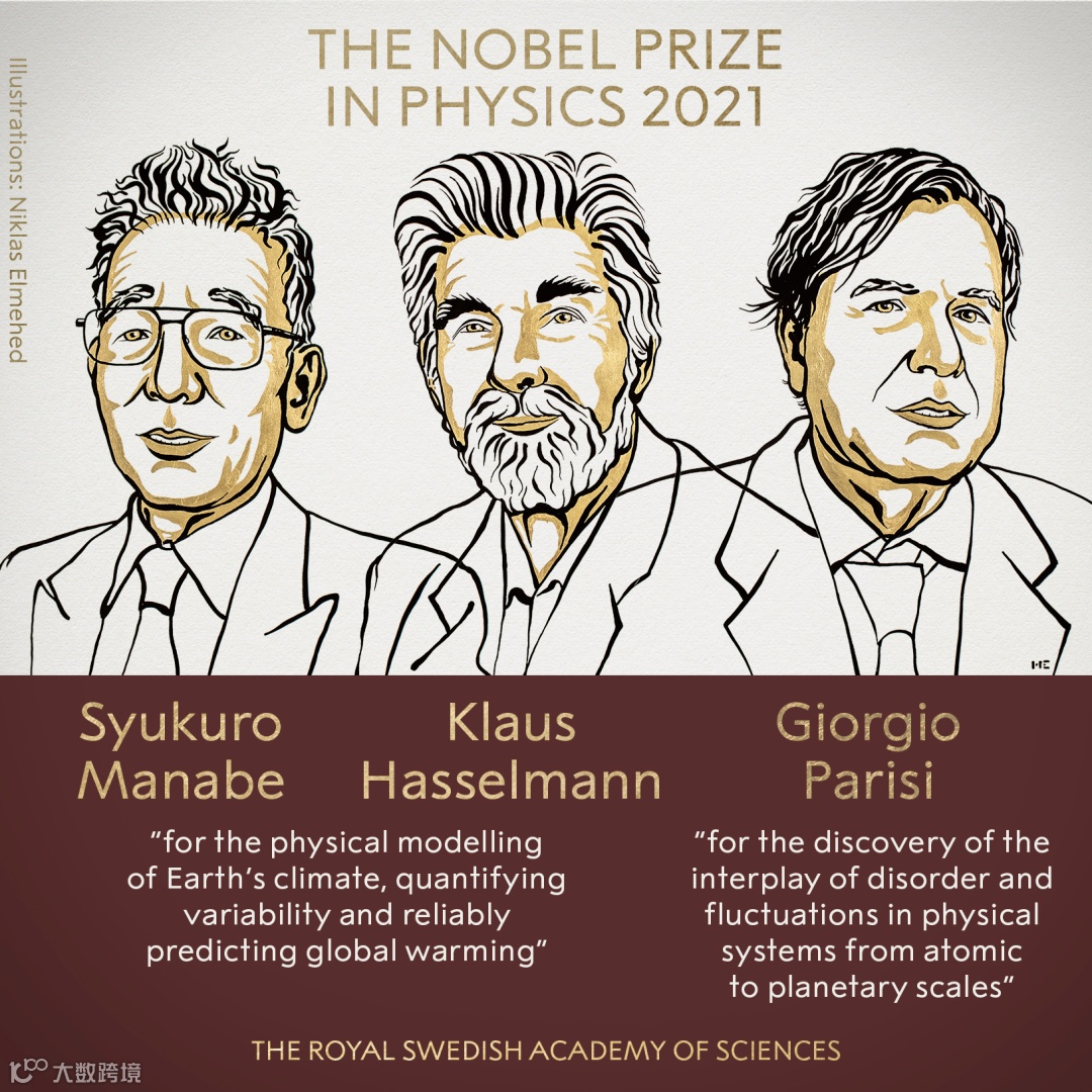 北京时间10月5日下午,2021年诺贝尔物理学奖揭晓,三位科学家因复杂系统研究贡献而获奖。真锅淑郎(Syukuro Manabe)和克劳斯·哈塞尔曼(Klaus Hasselmann)因为“地球气候的物理建模,量化可变性并可靠地预测全球变暖”的研究共享了诺贝尔物理学奖的一半奖金。乔治·帕里西(Giorgio Parisi)因为“发现了从原子尺度到行星尺度的物理系统中的无序和涨落的相互作用”而获得了诺贝尔物理学奖的另一半奖金。