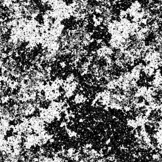 这张图乍一看,好像也是很随机的,但是当你拿着放大镜仔细看的时候,就会发现不同尺度的复杂结构。图中大量的黑色的或白色的方格会相互连接形成一片片的岛屿。不同颜色岛屿之间形成了犬牙交错的复杂结构。事实上,这些岛屿就和真实岛屿一样,是分形的。如果你放大这张图不同的倍数,你会发现这些看起来随机的岛屿却展现了惊人的相似性。