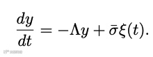 这里y表示的就是全球平均气温、海平面温度等全球大尺度气候变量。相比于洛伦兹方程,这里多出了一个随机涨落项ξ,而这一项恰恰就包含了微观的混沌因素。也就是说,从大尺度上看,混沌所造成的随机性就变成了类似于投掷硬币一样的随机变量。