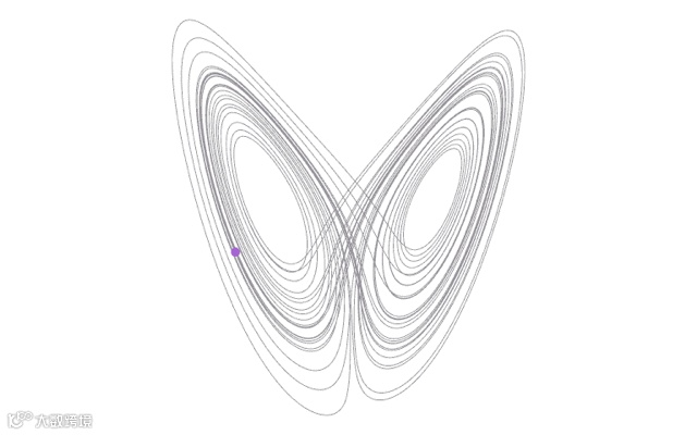 你首先会看到,这个动点经过长期运动所形成的轨迹就像一支张开了翅膀的大蝴蝶!这大概就是为什么当时洛伦兹把混沌现象叫做蝴蝶效应的真正原因吧。