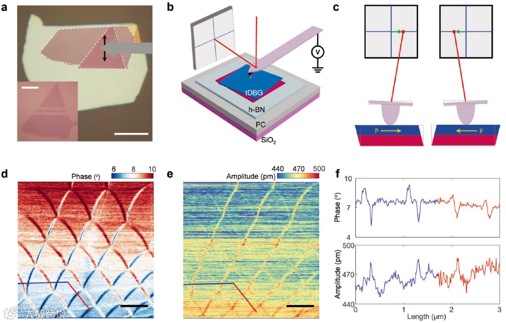 二维摩尔超晶格中的超导,铁磁以及铁电等强关联物理现象的发现,使得对摩尔超晶格的研究备受关注。此外摩尔超晶格被认为存在挠曲电效应,但在使用压电原子力显微镜表征过程中存在不可避免的假像,使得对摩尔超晶格中挠曲电的认识存在很大的不足。例如,在扭转双层石墨烯中尽管理论上的两个相反的挠曲电极化之间的相位差为180度,然而实验中只有8度。正确认识摩尔超晶格中挠曲电现象,需要对摩尔超晶格的力电耦合性质的精准表征和正确分析。本文以扭转双两层石墨烯为例,结合理论计算和实验测量,展示了一种得到本征摩尔挠曲电的表征和分析方法。