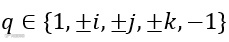 四元数群中,基础元素的基本乘法规则为
