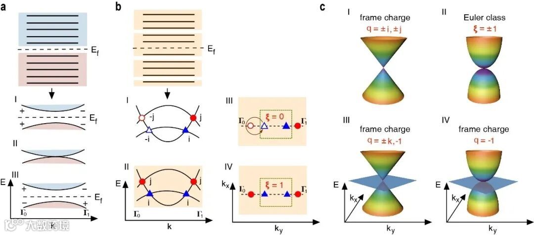 (见图1c)的稳定二次型结点。上述图景暗示了Nielsen-Ninomiya理论的非阿贝尔规避,该理论指出只有总阿贝尔电荷为0的结点才能在单一带隙中同时产生或湮灭。相反,在非阿贝尔半金属中,具有相反框架电荷的结点,总电荷q= i *(-i) = j *(- j)=1,能同时产生或湮灭。而其余所有情形均为拓扑稳定的。