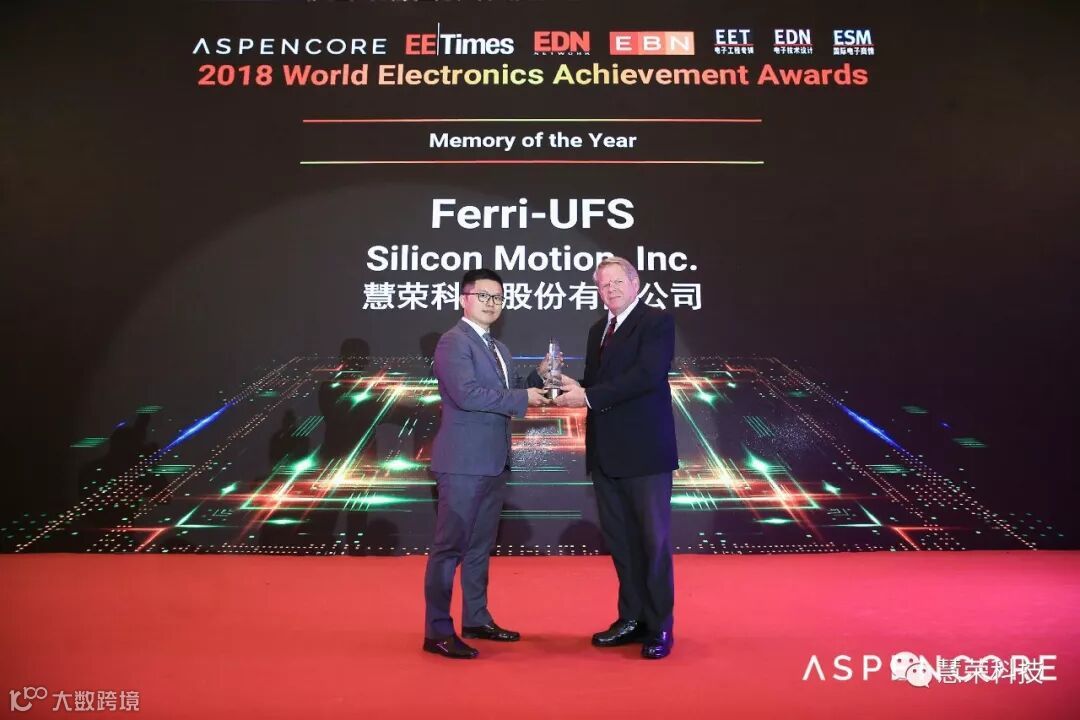 Ferri-UFS 荣获Aspencore 2018年度存储器奖,业务协理 陈文硕 代表领奖。