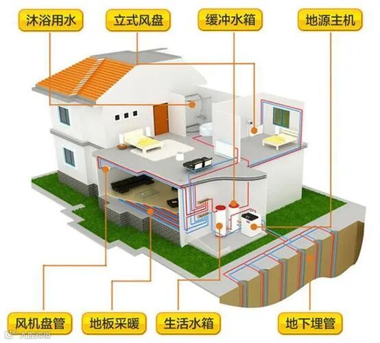4. 无需室外机:与空气源热泵相比,地源热泵无需室外机,避免了室外机的噪音和影响美观的问题,增加了使用的便利性。