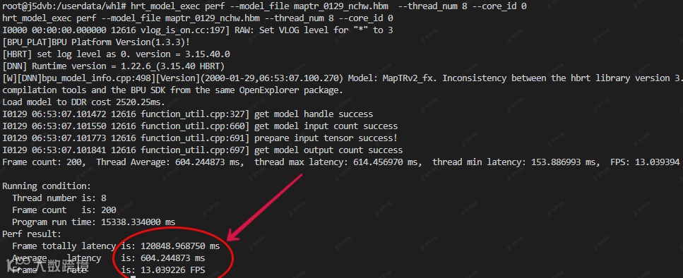 在模型上板的过程中,觉非在对MapTR模块和算子替换后重新训练得到基准的fp32浮点模型,对浮点模型进行计算图优化,利用少量校准数据集对模型做量化校准,并编译生成可以在地平线J5上运行的指令集模型。