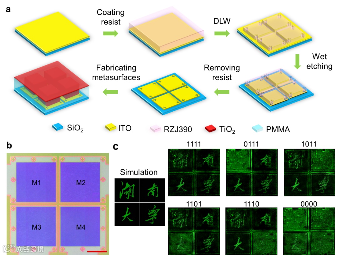 图四 可寻址动态超构表面全息图演示