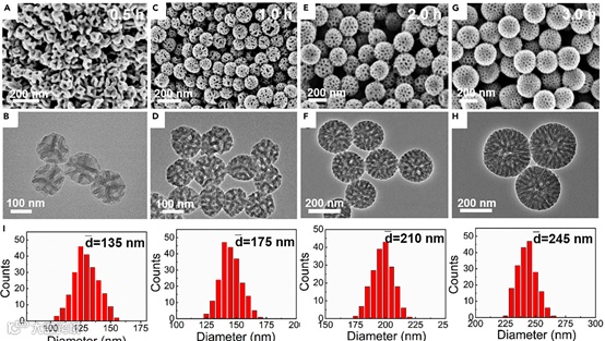 当前的合成方法主要包括喷涂,滴注,胶体辅助组装,改良斯托伯法,空间受限聚合,聚合物组装和固相反应等。但是,在这些合成方法中,材料的结构很难达到有效地控制,并且大多数生成的介孔碳纳米球 (MCS) 仅限于单级孔结构。而具有多级孔结构的MCS可以带来改善的或新的物理化学性质。尤其是在复杂的双级介孔中,这种结构不仅可以显着增加反应物可到达的活性位点,而且还可以控制反应在独立的介孔孔道内发生。