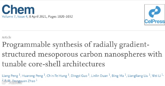 Wei Li et al. Programmable synthesis of radially gradient-structured mesoporous carbon nanospheres with tunable core-shell architectures. Chem, 2021, 7, 4, 1020-1032.