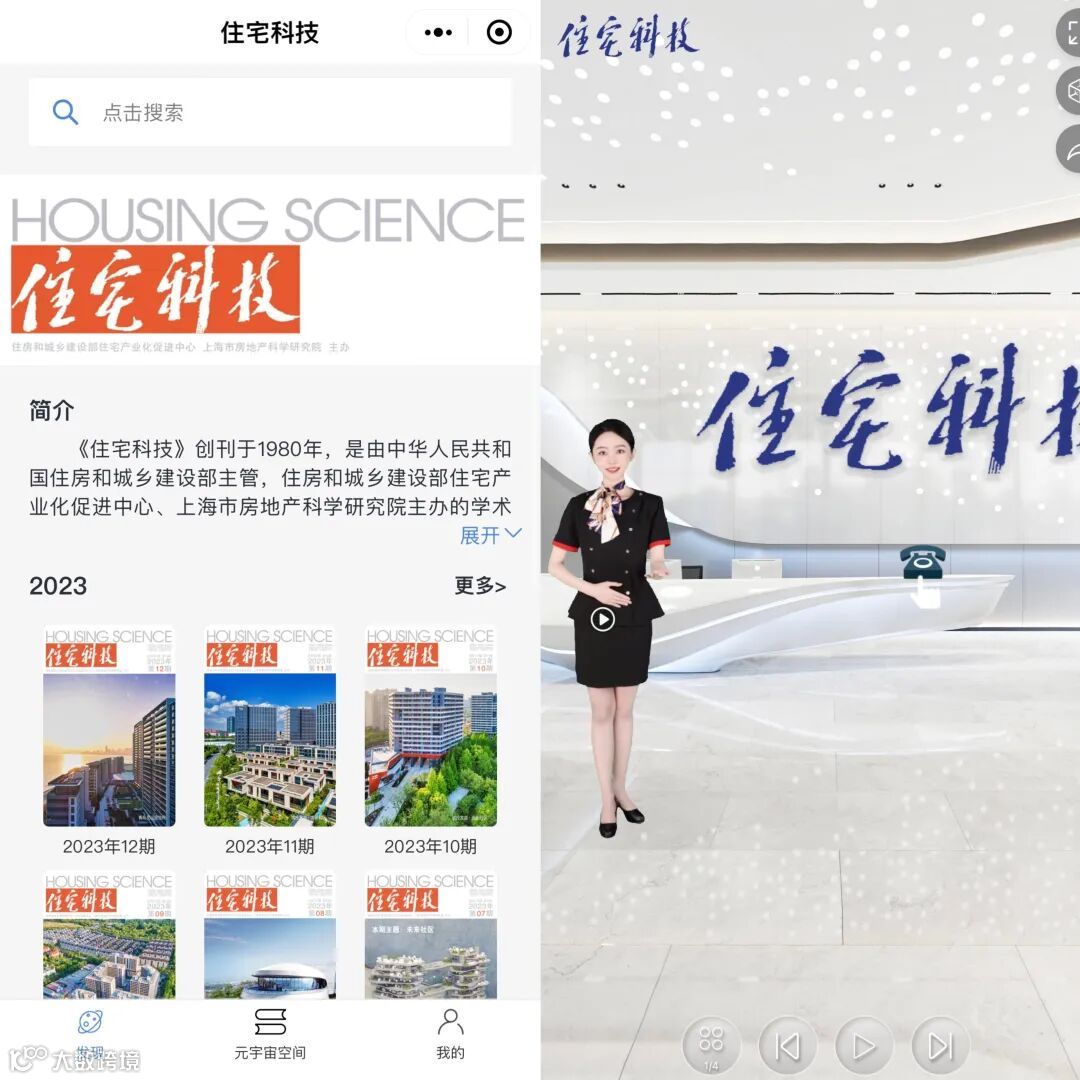 《住宅科技》积极响应国家号召,落实新媒体融合发展理念,依托博看网平台技术力量,打造《住宅科技》线上虚拟空间,以3D互联空间和数字导播为载体、以传播学术内容为核心,以刊物历史沿革及阶段成果为展览,为作者、读者建立深沉浸式、强交互性的崭新宣发阵地,助力刊物向元宇宙时代转型升级。欢迎大家进入元宇宙空间体验!
