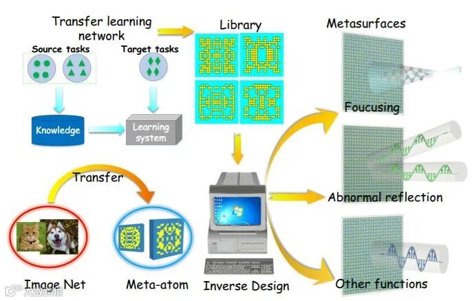 近日,西安空军工程大学理学院的王甲富教授和新加坡国立大学工程学院电气与计算机工程系的仇成伟教授团队提出了一种基于迁移学习逆向设计方法,用于快速准确地实现功能元表面。转移学习使将训练有素的模型转移到新任务成为可能。我们将初始V3模型应用于表面设计,并成功地将图像识别知识转移到相位预测中。在使用收集数据重新训练了转移学习模型(TLM)之后,他们获得了可用于预测超结构单元相位的新模型,其准确度约为90%,并使用迁移学习建立了一个全阶段跨度的超原子库,以实现逆向设计。使用由TLN模型建立的全相数据库,给定所需的2D相轮廓,可以自动而快速地生成功能超表面的整个图案。与常规方法相比,该方法是预测亚原子相位的有效手段,并且可以建立完整的用于设计功能性超表面的数据库,大大提高了设计效率。相关研究发表在《Nature Communications》上。(钟雨豪)