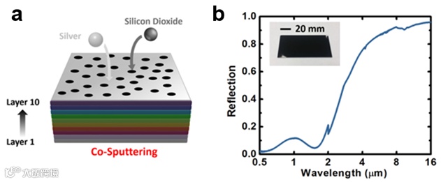 图2.共溅射蒸镀的选择吸收膜以及其光学特性。