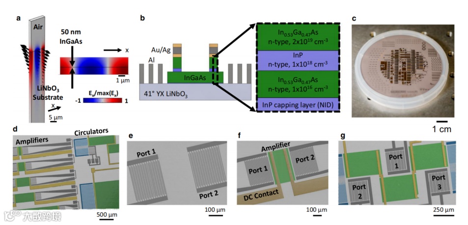 在无源压电声波技术中加入有源、非线性和非互易的功能,可以使全声学和超紧凑的射频信号处理器成为可能。近日,来自美国桑迪亚国家实验室的Lisa Hackett等人为了实现这个目标,提出了一个异质集成的声电材料平台,由50纳米砷化镓钛半导体薄膜与41°YX铌酸锂压电基板直接接触。然后,演示了一个全声学射频信号处理器的三个主要组件:无源延迟线滤波器、放大器和循环器。相关工作发表在《Nature Communications》上。(郑江坡)