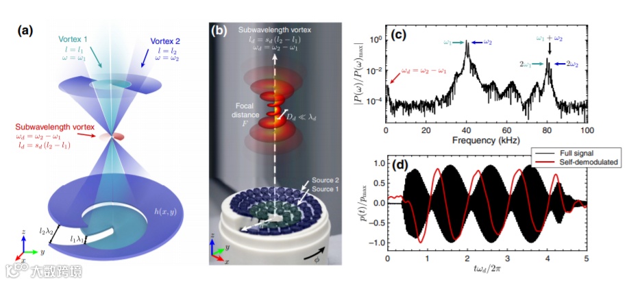 近日,西班牙瓦伦西亚理工大学分子影像仪器研究所的Noé Jiménez教授和法国勒芒大学声学研究的Vicent Romero-García教授利用非线性自解调技术显示了在超过瑞利衍射长度的距离处形成了亚波长和次散射声涡旋。在非线性波混频过程中,由于角动量守恒,两个初级涡旋光束的时空干涉产生了亚波长涡旋。衍射极限以下涡流的合成在很多领域非常重要,例如使用涡流收发器的水声通信。在参量声天线中,主波束形成的端射虚阵会产生亚波长涡流。因此,使用自解调涡旋光束的涡旋编码信息在复杂介质中传输时,由于较低的吸收和散射,可以在较远的距离传输。这些结果表明,利用自解调技术可以产生任意拓扑电荷的旋涡,旋涡的宽度可调且为亚波长。这项工作为实际应用铺平了道路,例如基于涡流收发器的远程水下通信系统或用于生物医学超声应用的粒子和微泡的捕获和操纵。相关研究成果发表在《Physical Review Applied》上。(钟雨豪)