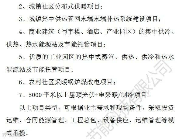 3、投资回收期三年以内的节能项目或4年以内的以学校、医院和公建项目为主的供冷供热投资运维项目。