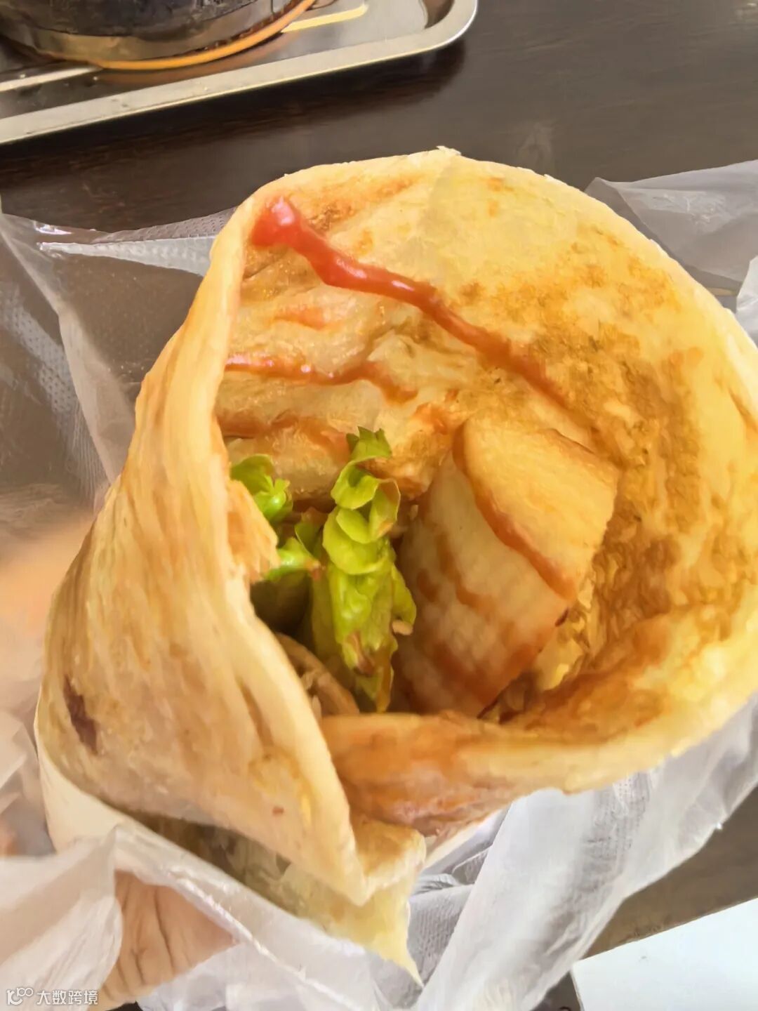 ○手抓饼:饼皮酥脆,里面可以加入鸡蛋、火腿、生菜、肉松等食材,再抹上一层甜面酱或辣椒酱,散发着诱人的香气。