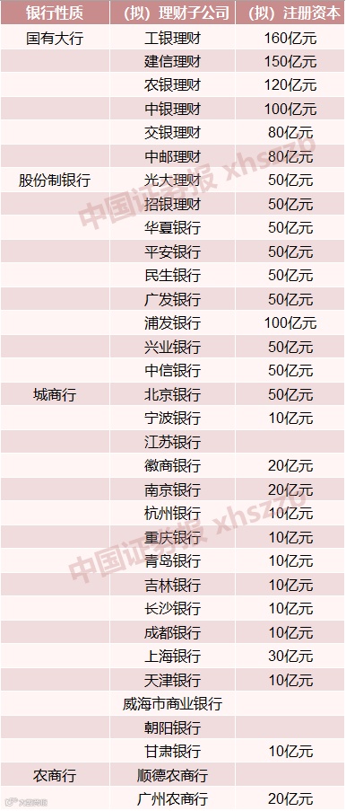 此外,杭州银行、宁波银行、徽商银行、中信银行等理财子公司筹建申请已获批。