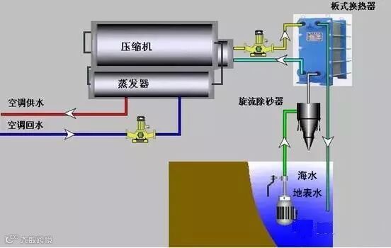 答:水源热泵的工作原理与风冷热泵基本相同,都是一个"搬运"能量的过程。为用户供热时,水源热泵从水源中提取低品位热能,通过电能驱动的水源中央空调主机(热泵)"泵"送到高温热源,以满足用户供热需求。为用户供冷时,水源中央空调系统将用户室内的余热通过水源中央空调主机(制冷)转移到水源水中,以满足用户制冷需求。