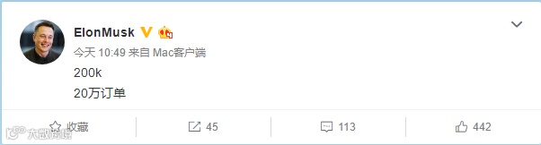 而在马斯克的微博留言中,有网友已经秀出了订单截图。