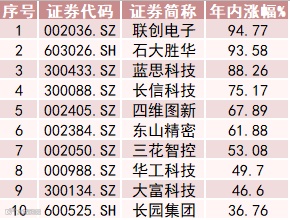 wind特斯拉指数成分股年内涨幅居前股票