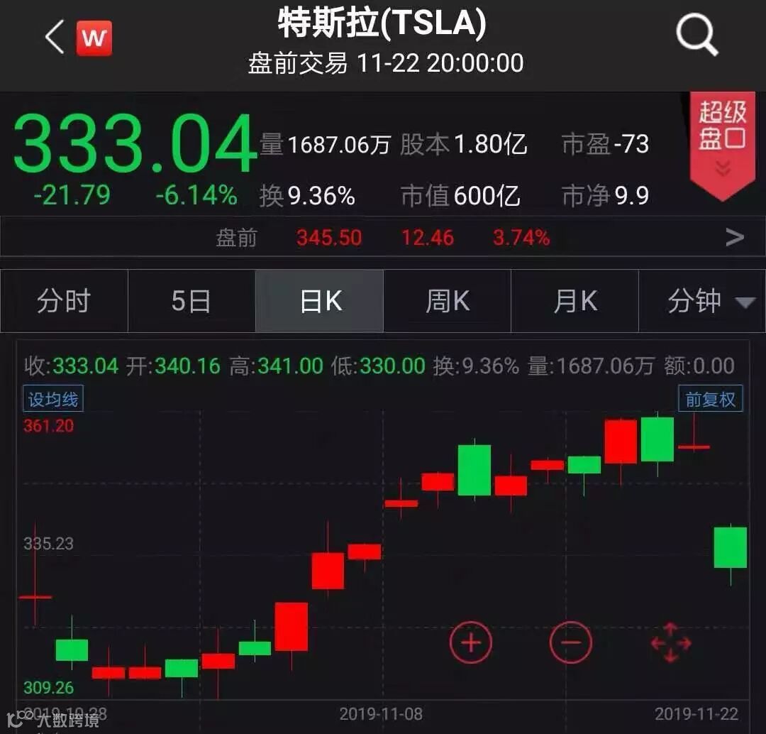 预售情况向好也刺激了特斯拉的股价,11月25日特斯拉盘前股价上涨3.74%。