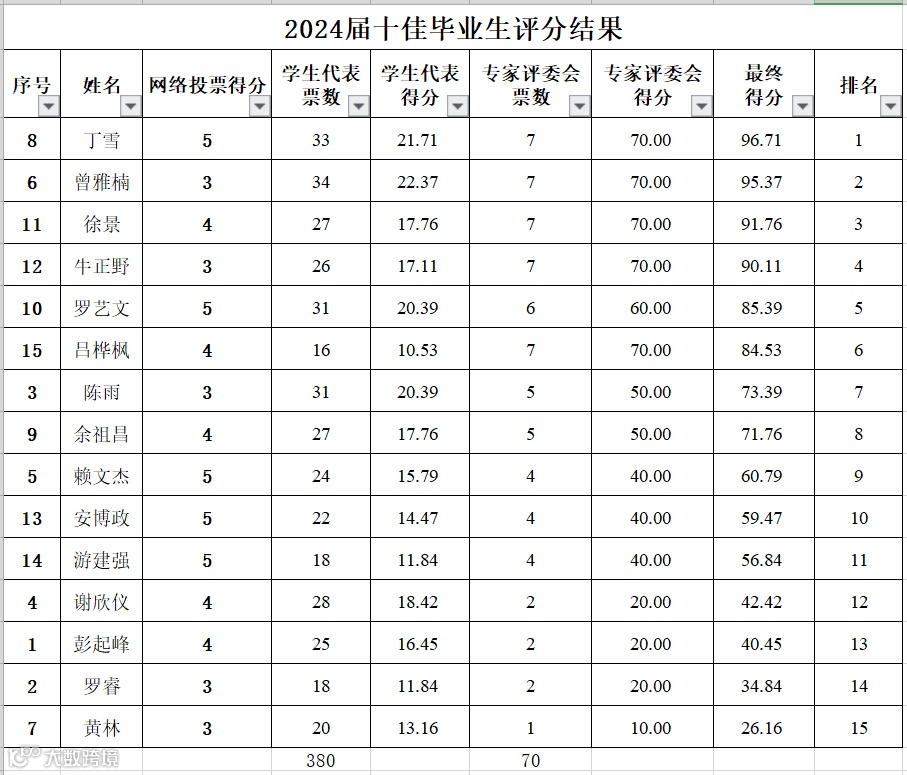 以下十位同学获得“十佳毕业生”荣誉称号: