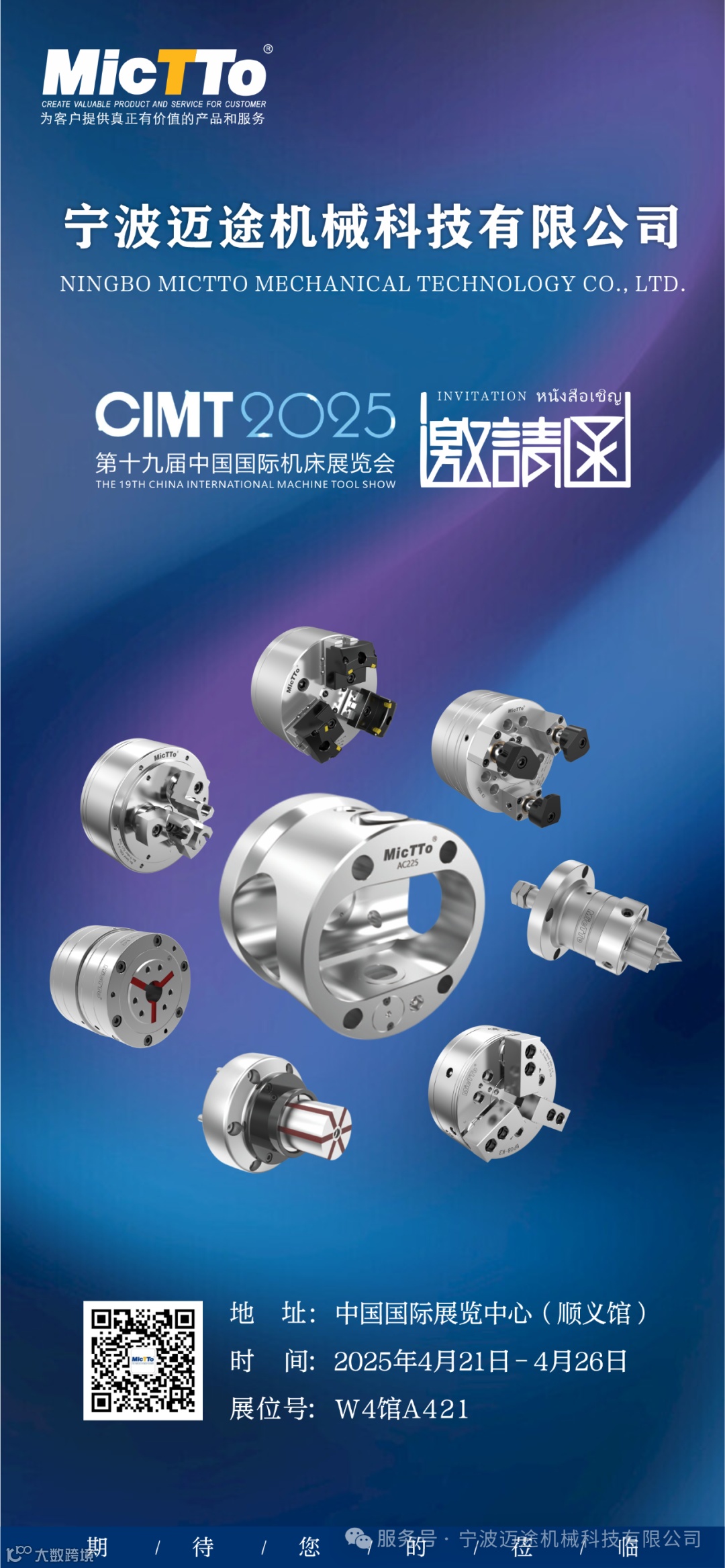 宁波迈途科技将展出分度卡盘、橡胶卡盘、斜拉卡盘、指压卡盘、浮动卡盘、液压端驱等精密动力卡盘及夹治具产品和多种方案演示,诚挚期待与您的交流,MicTTo的伙伴们将会在现场为您展示,为您提供真正有价值的产品和服务。