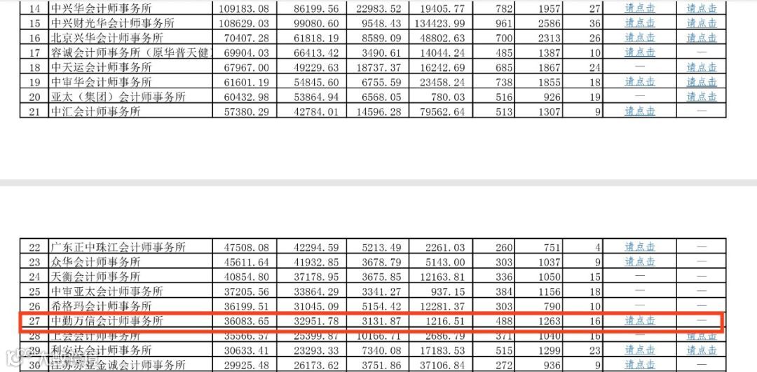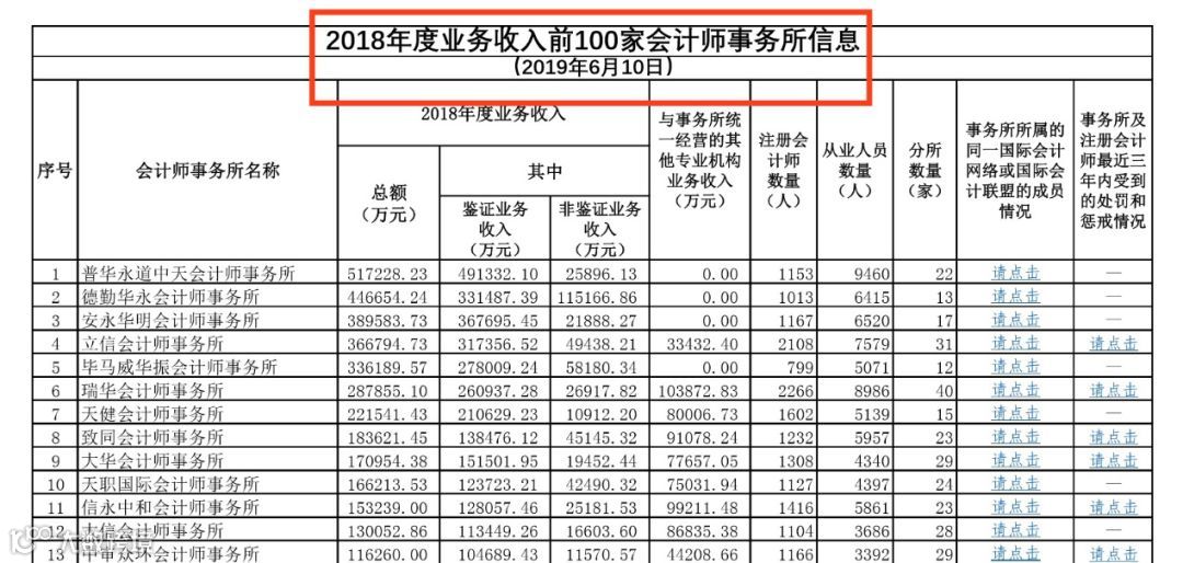 根据中国注册会计师协会2019年6月10日发布《2019全国会计师事务所排名综合评价100强》排名显示,中勤万信在2018年业务收入中排第27位。
