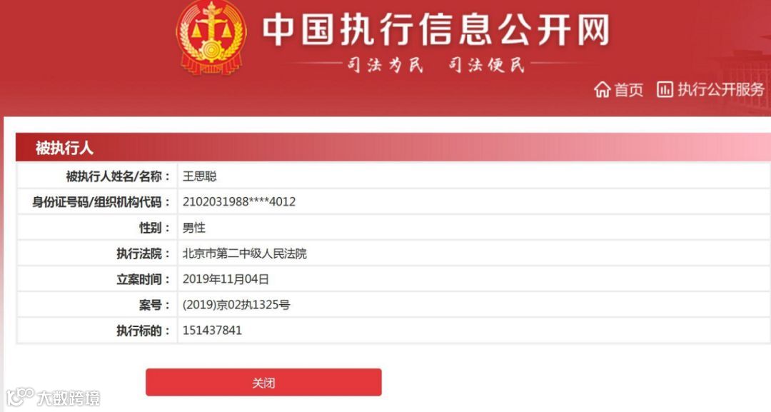 中国执行信息公开网显示,11月4日,王思聪被北京市第二中级人民法院列为被执行人,执行标的1.51亿元。