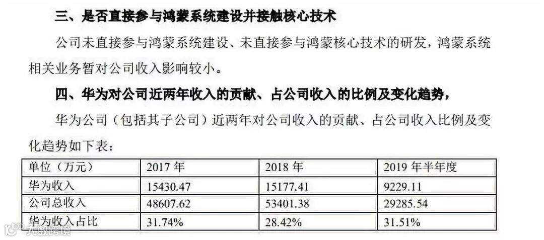 此外,关注函还要求说明华为近两年对公司收入的贡献、占公司收入的比例及变化趋势。