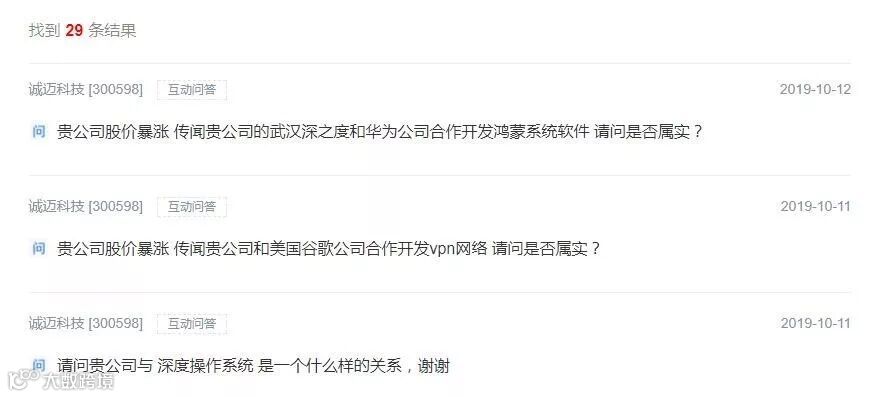 9月6日,诚迈科技又回复投资者称,华为是公司的业务伙伴。值得关注的是,深交所在关注函中提及了诚迈科技在互动易和股吧上回复与华为公司的关系情况。