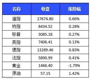 欧美股市上涨 道指、标普再创收盘新高