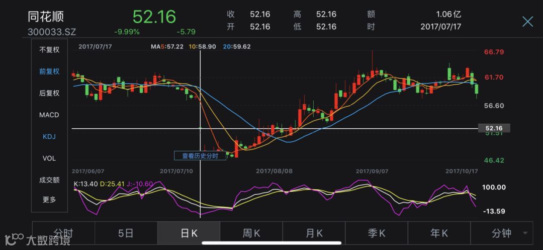 再看一下减持对于短期股价的影响。在同花顺首次披露减持计划的次一交易日,也就是2017年7月17日,公司股价“一”字跌停,第二日再次大跌7.99%。不过,同花顺很快就迎来触底反弹,在接下来的两个月的时间里大涨35%。