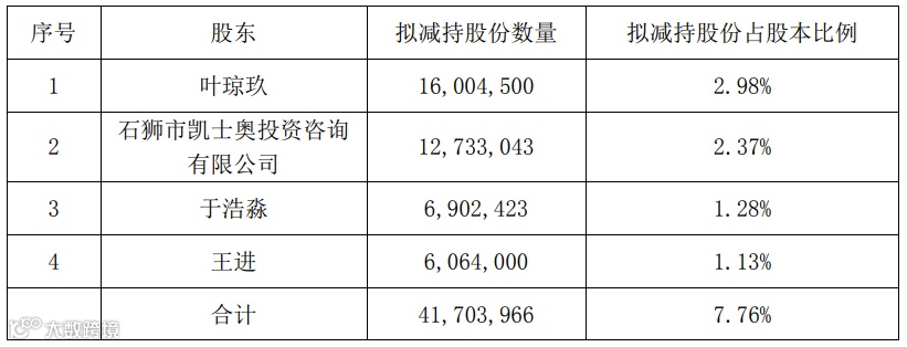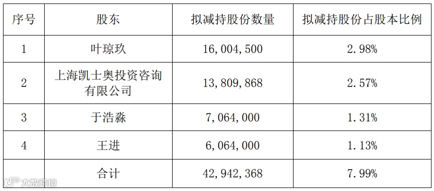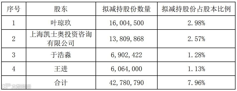 不过,同花顺又同时披露了叶琼玖、于浩淼、王进、凯士奥新的减持计划,同样是在公告起15个交易日后未来六个月内,合计减持不超过同花顺总股本7.96%的股份。