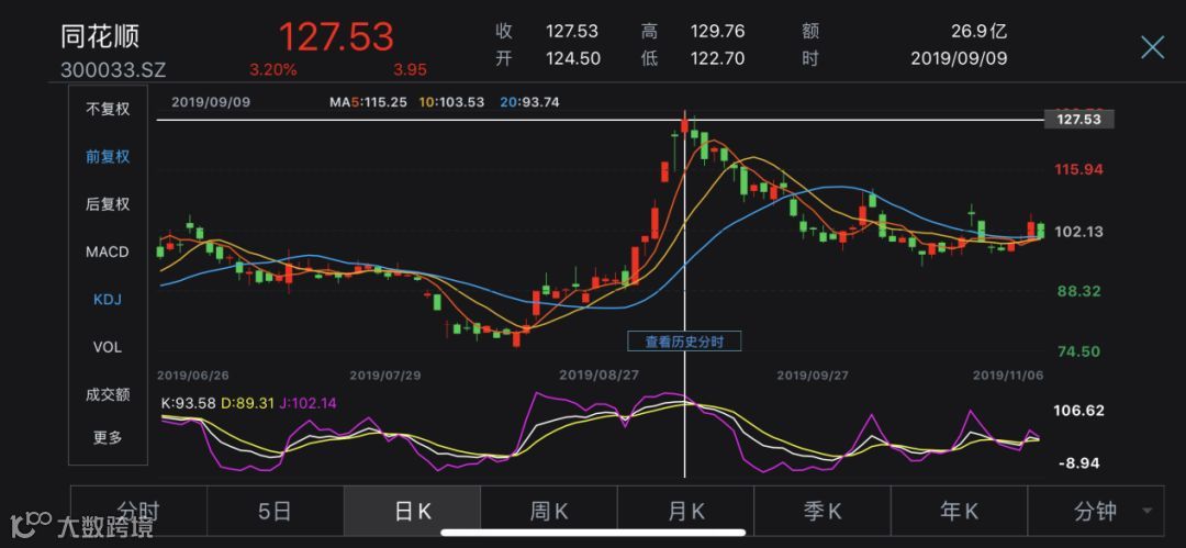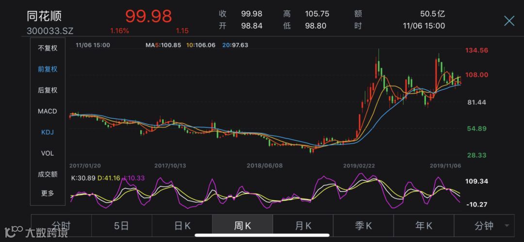 不得不说,这7%多一点的股份减不完,就一直是悬在同花顺头顶上的一把“达摩克利斯之剑”。但是,从这两年多同花顺股价的走势来看,似乎并没有受到一直存在的减持计划的影响,反而在2019年连续刷新历史新高。