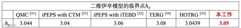 数值模拟在理解强关联多体系统中具有关键作用,目前常用的方法包括:量子蒙特卡洛(QMC)、密度矩阵重整化群(DMRG)、矩阵乘积态(MPS)、投影纠缠对态(PEPS)、纠缠重整化态(TERG)、高阶张量重整化群(HOTRG)等。本工作表明,基于保真度零点的李-杨理论框架可作为一种有效的数值工具,用于刻画量子临界性。并且,仅通过在5×5晶格上进行精确对角化获得的保真度零点有限尺寸标度行为,就与基于大规模数值模拟计算所得结果高度吻合。具体对比数据详见下表2。