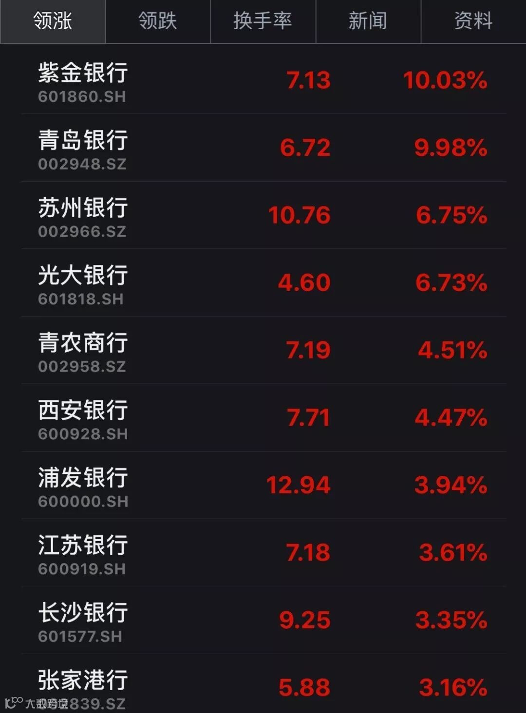 板块内成分股紫金银行、青岛银行涨停,苏州银行、光大银行等涨幅居前。