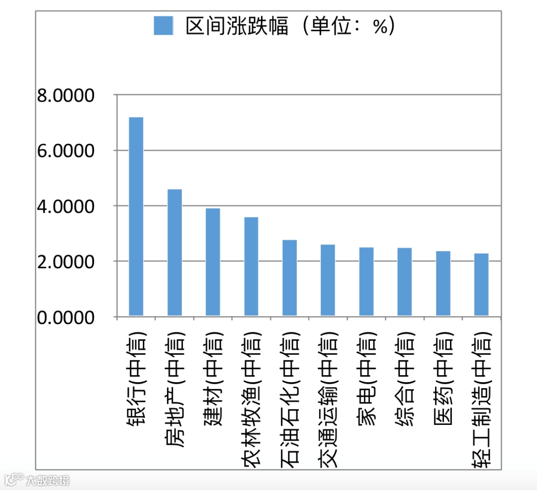 9月26日至今,银行板块的区间涨幅位列29个中信一级行业板块之首。以下为该区间内涨幅前十名板块。