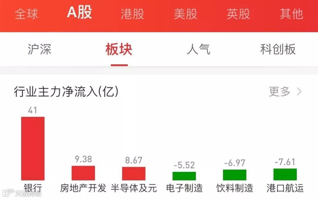 据东方财富Choice数据显示,银行板块吸引主力资金净流入41亿元,成为“吸金重地”。