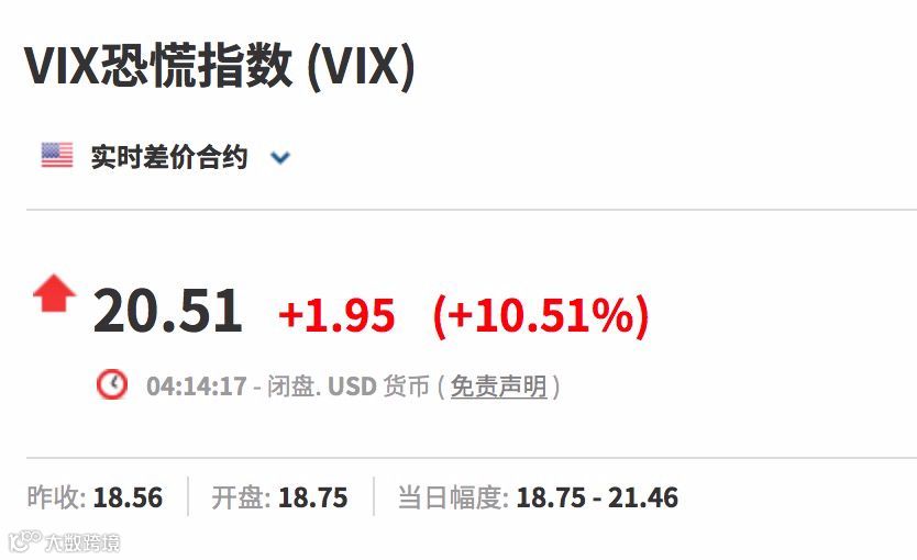 市场担忧情绪升温。衡量美股波动率的VIX恐慌指数飙涨。据英为财情数据,10月2日,VIX恐慌指数大涨10.51%。