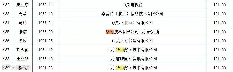 值得关注的是,华为系企业263人进入公示名单,其中217人来自北京华为数字技术有限公司,46人来自华为技术有限公司北京研究所。
