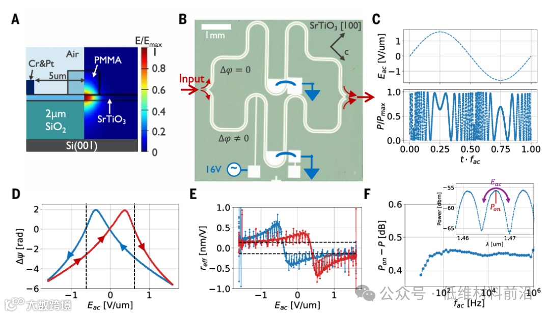 ③结合已知的量子介电 SrTiO3 中观测到的二次电光 Kerr 效应,验证了 SrTiO3 薄膜在低温下超越传统 Pockels 材料的潜力;