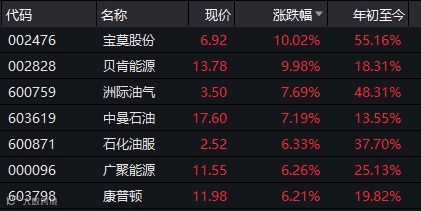 A股市场上,石油石化板块开盘涨近4%,领涨中信一级行业板块;板块内包括宝莫股份、贝肯能源等个股涨停。